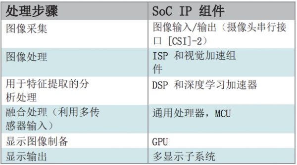环视和自动泊车应用的处理步骤以及所用的 SoC IP(点击可放大)
