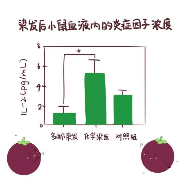 在安全性方面,崔基炜教授及其课题组进行了小动物实验。将小鼠的毛发用该方法染发后,剃除毛发的小鼠依然可以正常再生毛发(作为对照,用现在的染发剂染发过的小鼠再生毛发则相对缓慢);将染发材料涂在小鼠皮肤表面21天,小鼠也未发现过敏、蜕皮等现象,血液中的炎症因子分泌正常。动物实验说明,这一方法的安全性是较为可靠的。