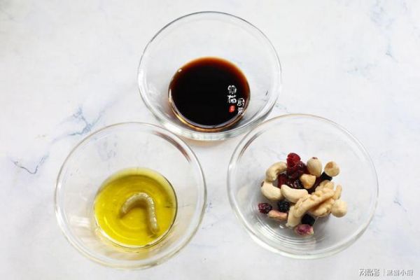 首先来说说我平时吃沙拉的汁儿,沙拉酱是极少用的,自己调沙拉油醋汁其实可以按照2:1:1的比例,2份黑米醋,1份橄榄油,1份黄芥末(微辣)。黑米醋有非常好的促进肠胃蠕动以及消化功能,热量低,是减脂瘦身的酱料汁首选。一瓶黑米醋可以用很久。橄榄油是不饱和脂肪酸的食用油,非常健康,适合用来低温烹饪或者做成沙拉拌菜调味用油,热量不高。另外,适当的坚果和干果,能增加这道菜的口感,果干一般是蔓越莓或葡萄干,许多人都喜欢每天吃一袋坚果,搭配日常饮食,也是非常好的饮食习惯。