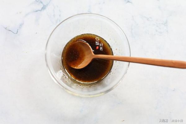 3.把橄榄油和黑米醋以及少许的黄芥末酱拌匀,建议用勺子或者用玻璃罐子,盖上盖子摇匀几下就充分混合了。还可以适当加少许食盐调味。