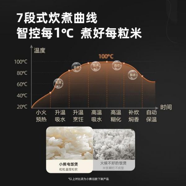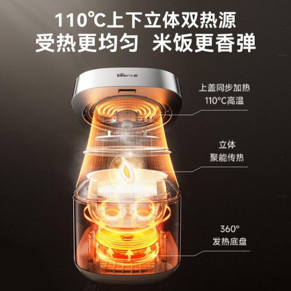 米饭口感极佳,煮饭更香:得益于上下立体双热源和1000Pa微压技术,小熊电饭煲能保证米饭每一粒都饱满松软、Q弹可口。与此同时,高导热性能的铁釜材料使得米饭能够充分吸水,煮出的米饭香甜自然,无论是快煮饭还是杂粮饭,每一口都是浓浓的幸福感。