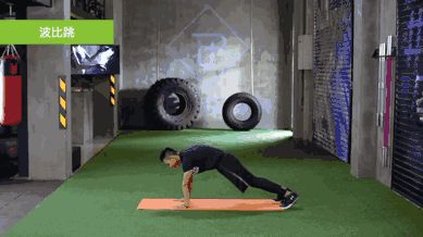 第二个版本就是我们的前跳后走波比跳,顾名思义就是我们起身的时候,而是向上跳跃,而是向前跳起身,再落地缓冲。