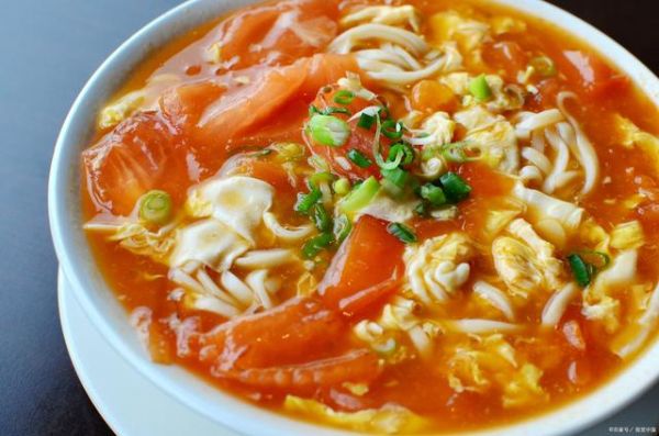 材料:面条适量、番茄 1 个、鸡蛋 1 个、青菜适量、葱花、盐、生抽、食用油