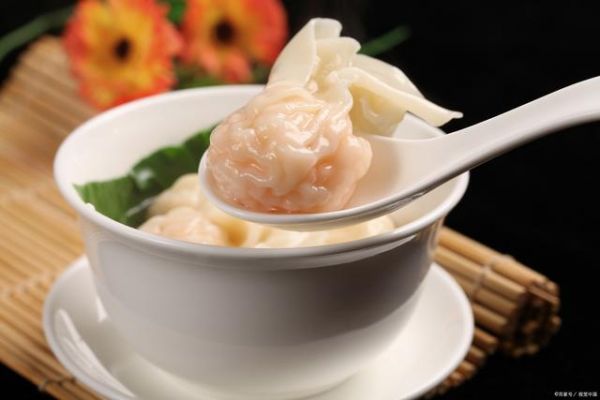 取一张馄饨皮,放入适量馅料,包成馄饨。