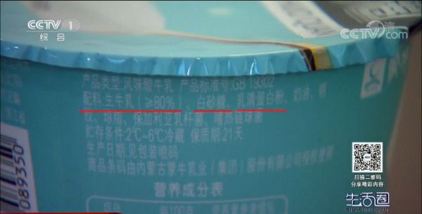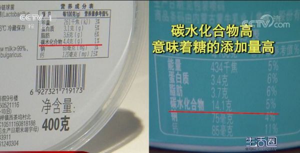 在酸奶的营养成分表中