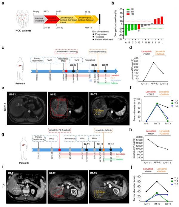 图4 肝细胞癌患者对仑伐替尼联合吉非替尼的治疗反应