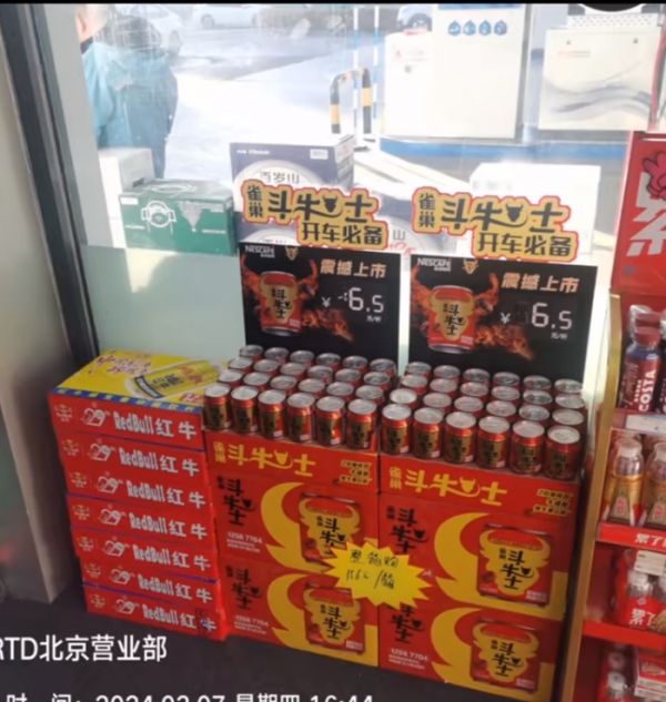 近日,小食代从社交平台留意到,一款名为“雀巢斗牛士能量咖啡风味饮料(简称:斗牛士)”已经上市,瓶身标注有“牛磺酸”、“维生素B族”这些常见的功能饮料成分。多张网图显示,斗牛士包装非常接近消费者常见的一些功能饮料产品,并已进入加油站等线下渠道,在一些售点甚至紧挨着红牛、东鹏和即饮咖啡陈列。
