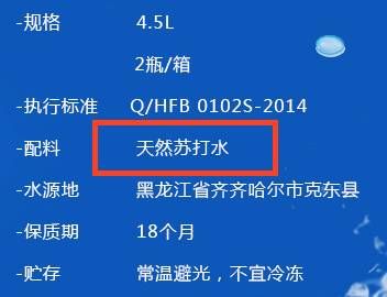从上图中可以看到,左边的配料表中只有一种“天然苏打水”,而右边的配料表是“水,碳酸氢钠,二氧化碳”。我们很容易就能分辨,左边是天然苏打水,右边是人工苏打水。