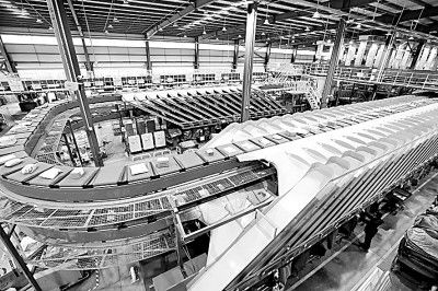 11月7日,在青岛顺丰华骏分拨中心,全自动智能分拣系统分拣包裹。新华社发