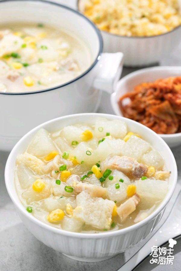 1.锅中放入少量猪油,加入五花肉煸炒, 2.加入姜片、干虾米炒香后,加入冬瓜丁炒至半熟, 3.倒入热水,加入玉米粒,竹荪煮软, 4.加入盐、白胡椒调味, 5.关火淋入鸡蛋液,快速搅拌成蛋花即可。 6.出锅撒上葱花。