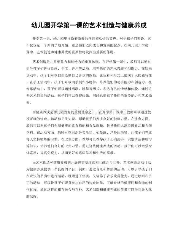 《幼儿园开学第一课的艺术创造与健康养成.docx》由会员分享,可在线阅读,更多相关《幼儿园开学第一课的艺术创造与健康养成.docx(2页珍藏版)》请在咨信网上搜索。