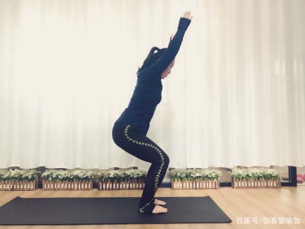 体式分解:首先以山式站立,身体自然而放松。两脚分开与肩同宽,双腿微微屈膝,身体做马步状,双手抬起伸直,指尖指向前方。挺胸收腹提臀。