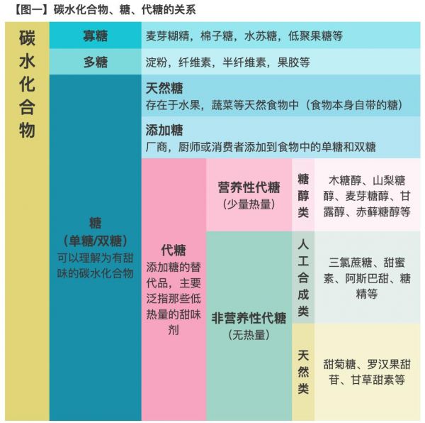 有不少人会把糖与碳水化合物划等号,其实糖是碳水化合物中的一种,碳水化合物还包括寡糖、多糖。搞清这三者的关系是很有必要的(如图一所示),这利于我们在面对琳琅满目的产品时,辨清产商的陷阱。