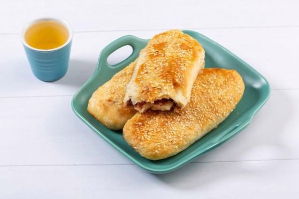 材料和制作:芜湖酥烧饼制作技艺复杂,分皮面、酥面、心馅等多道程序,以皮面包裹酥面熏烤,油而不腻,入口即酥。