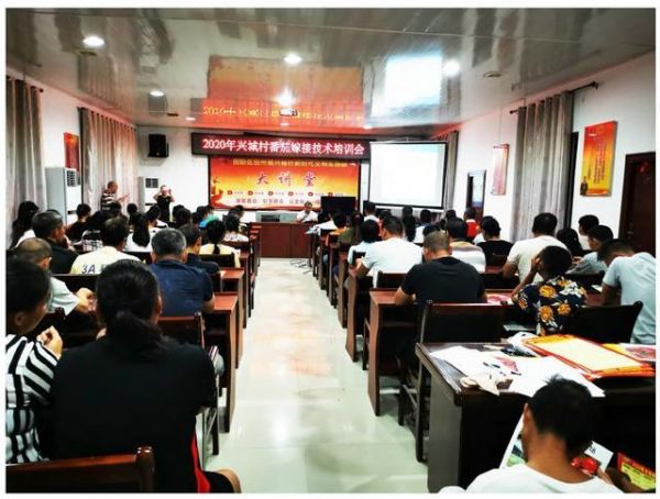 2 0 2 0 年8月21日田州镇兴城村举办2 0 2 0 年兴城村番茄嫁接技术培训会,由田阳区樱桃番茄育苗能人黎峰给兴城村樱桃番茄种植户讲解