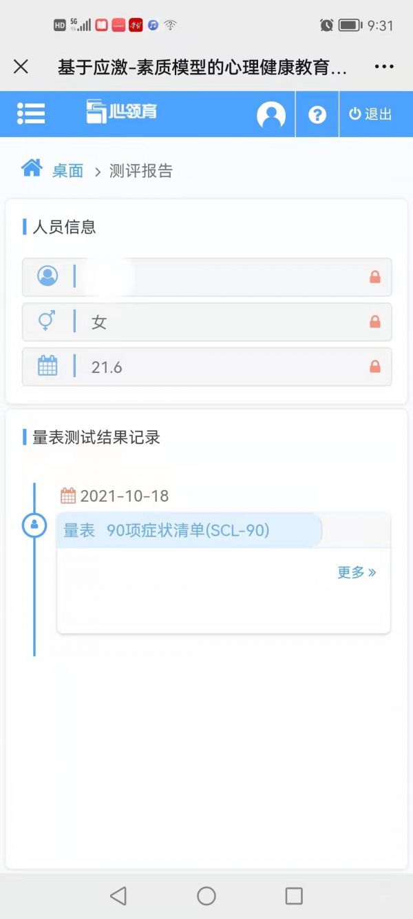 2、输入帐号、密码(帐号为学生学号,密码为A学号,如学号为2020123456密码为A2020123456)——完善个人基本信息——心理测评——90项症状清单(SCL-90)测试/大学生心理健康调查表(UPI)——开始测试——提交结果