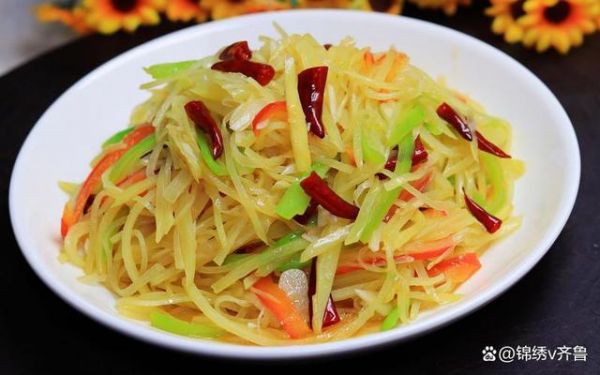 3、然后加入适量的食盐和白醋调味提鲜,接着继续大火翻炒至土豆丝断生。