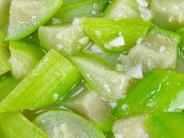 2、起锅烧油,油热后放入蒜粒炒香,再放入冬瓜翻炒一会儿。