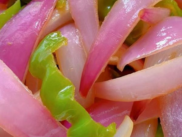 准备食材:青椒,洋葱,姜片,蒜片,葱段。