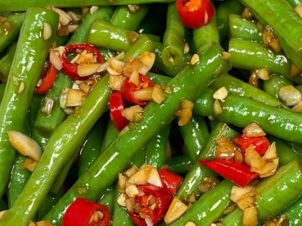 准备食材:豆角,蒜末,小米辣。
