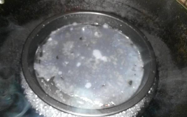 4.放入烧开的锅中,盖上蒸制40秒掀盖。