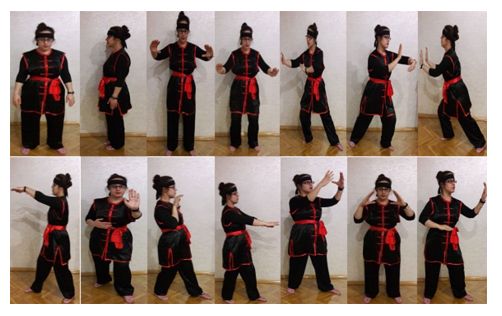 所有参与者被随机分配到干预组(TCC组)和对照组(非训练组)。在试验开始前对所有参与者进行个人信息表、Tinetti平衡量表(TAT)、运动恐惧症量表(TSK)、老年人身体活动量表(PASE)和跌倒行为量表(FaB)的采集评估。之后,干预组在研究者的帮助下开始进行太极拳练习,每周三、四进行两次TCC锻炼计划(图2)。在12周结束时,再次使用PASE、TAT、FaB和TSK量表进行评估。对照组未进行任何体育锻炼,仅使用数据收集表(研究前和研究后)与干预组一起进行评估。