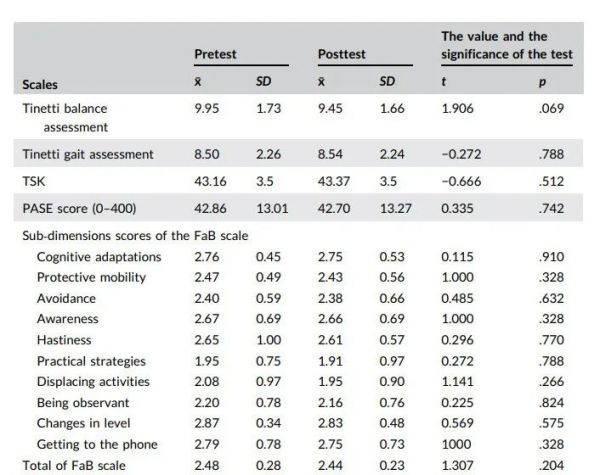 本研究对12周的太极拳锻炼对MCI老年人的改善运动恐惧、跌倒预防和改善有效。