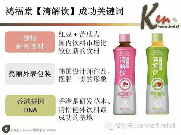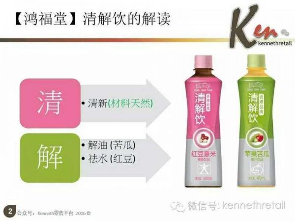 除了外表带来新意,产品的另外一大亮点就是其内涵。参照台湾饮料市场的发展,不少新品都采用了更健康的新兴食材为主打元素,而鸿福堂选用了红豆、苦瓜作为清解饮产品研发的主轴,针对都市人所面对的两大问题: