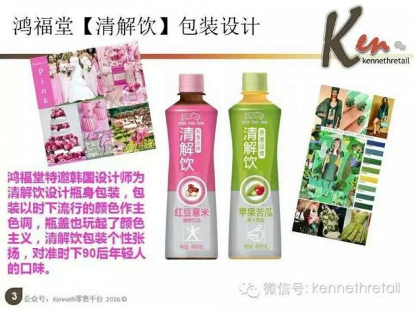 有如小茗同学的成功之道,清解饮除了有内涵,在外表也有创新的突破,基于独特的颜色+包装成功建立品牌形象+视觉刺激。好看的产品包装总是能激发顾客的购买欲!