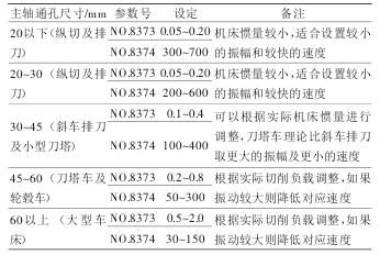 一般车削的过程中主要调整的参数为振荡的幅度8373参数及振荡的速度8374参数。根据现有的调试经验,一般参数的设置范围同机型大小有比较强的关系,下面通过表4推荐一些适用于不同机床大小的设置范围以方便快速的调试工作。