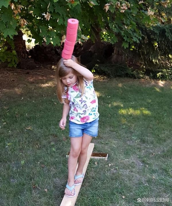 也可以尝试让孩子顶着书,闭着眼睛走直线。家长要在一旁做好保护工作,避免孩子撞伤或摔倒。