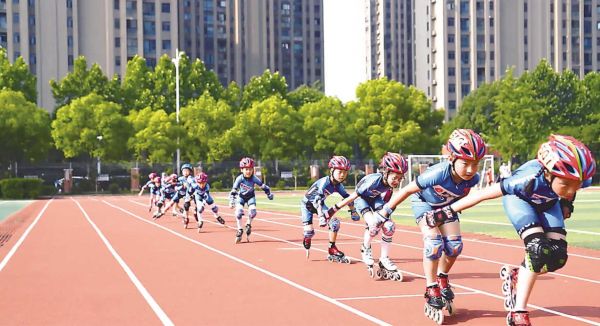 合肥市屯溪路小学滨湖校区的学生在上轮滑课,充足的户外运动可以有效防控近视。 方旭东 摄