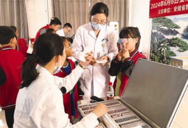 安徽省教育厅体育卫生与艺术教育处联合安徽医科大学第一附属医院眼科公益医疗团队在霍山县三尖铺村开展聚焦儿童青少年近视防控公益活动。(受访者供图)