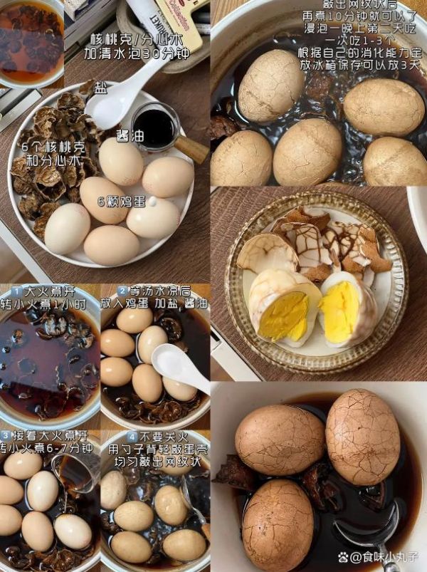 我以前也用核桃煮过鸡蛋,味道也很好,颇受欢迎。我通常会做好分批在三四天内食用。