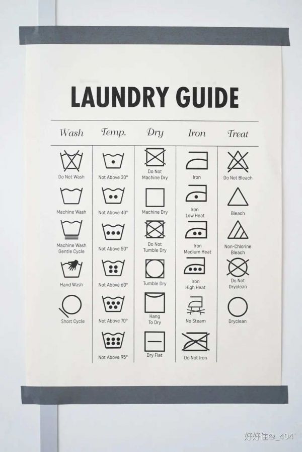 搞不清楚每个符号的意思,不妨把洗衣指南打印出来贴在洗衣区。