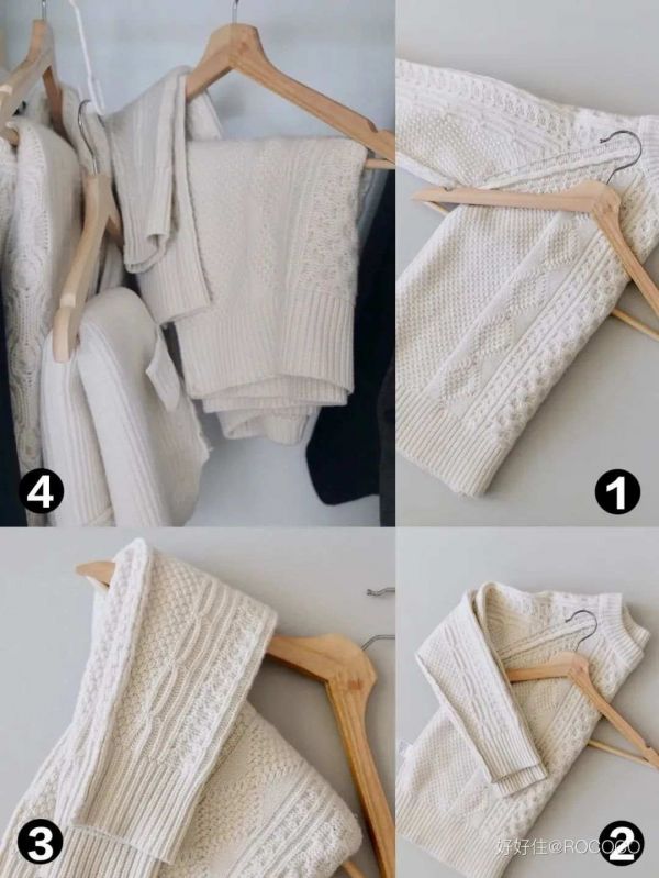 毛衣织物比较柔软,叠放久了可能会压得不平整,但直接用衣架撑起来也很容易导致肩膀变形,过重的毛衣更是会越抻越长,可以叠一下再挂起。