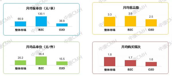 从消费者的交易情况看,消费者在O2O渠道消费更多呈现的是按需购买,客品数和客单价较其他渠道低。B2C客品数、客单价更高,主要是因为消费者更喜欢在B2C渠道进行“囤药”。