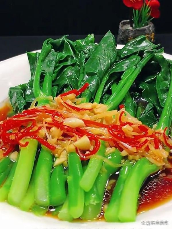 准备食材:芥兰、蒜末、葱丝、辣椒丝