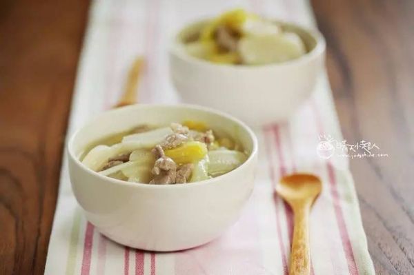 ❸烧热余油,倒入白菜段,翻炒至软,倒入适量温水,大火烧开后,倒入肉丝和年糕,小火慢炖至年糕变软即可。