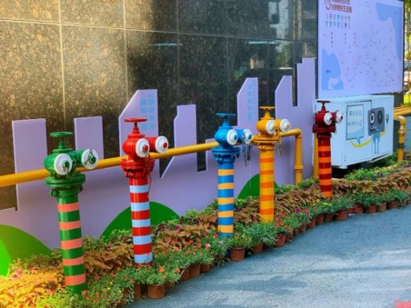如今,小区消防栓变成“大眼仔”,水表箱变身为海绵宝宝,小猪佩奇、愤怒的小鸟、京剧脸谱则把家安在了井盖上;具枫叶特色的标识标牌、文化宣传栏,成为了枫叶山小区的“形象代言”。“整容后”的小区,展现出“惊为天人”的新容颜。