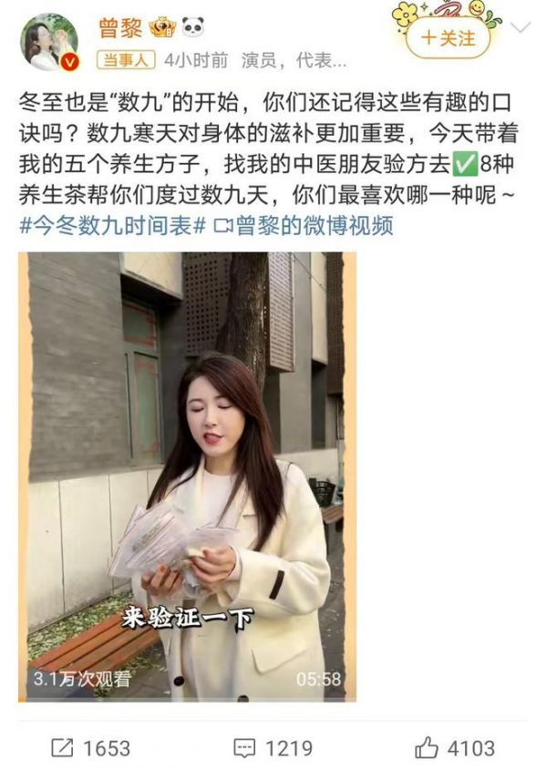 网址: 曾黎自学中医显奇效,药方获赞引发网友热议,养生之道成典范 https://m.trfsz.com/newsview773690.html