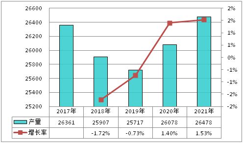 图表:2017-2021年全球藕粉产量分析