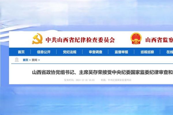 山西政协主席吴存荣被查,打虎行动再添新标...全文