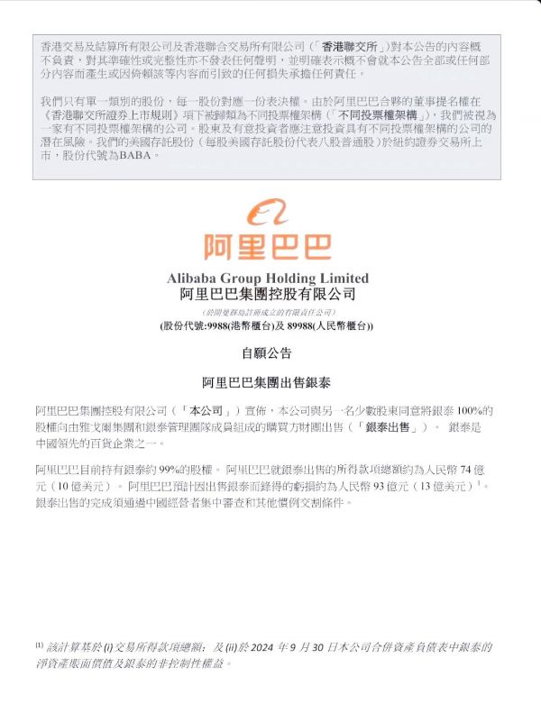 阿里出售银泰百货,亏损93亿后未知数增多...全文