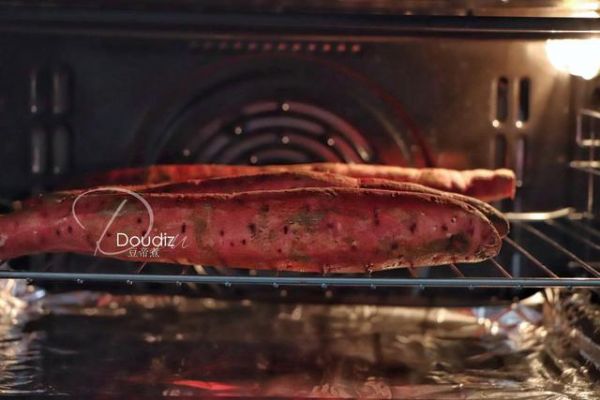 应该把锡纸垫在烤盘上置于底层,然后放入烤架置于中层再放入红薯。如果你家中的烤箱有循环风也就是风炉打开,用这样烤制的红薯口感要香更多也更好吃。经过高温烘烤,红薯产生的汁水会滴在烤盘上所以不用担心清洗的问题。