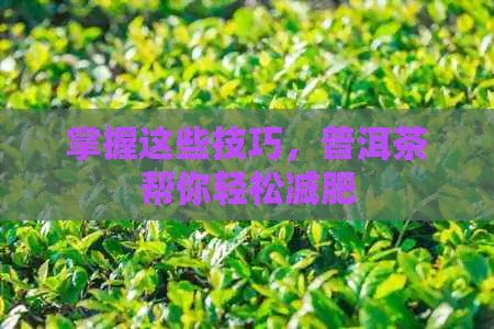 想要轻松减肥除了留意饮食和运动,还可尝试普洱茶。普洱茶以其特别的发酵工艺和多种有益成分受到多人的喜爱。它可帮助调节身体的新陈代谢,刺激脂肪分解,减少胆固醇以及清理体内的素。要想达到的效果,你还需要理解怎样去正确冲泡普洱茶,选择适合本身的茶叶种类控制冲泡的时间和度等等。本文将为你介绍若干关于怎么样利用普洱茶来帮助你轻松减肥的技巧和建议。期望这些信息可以为你的健和美容之路提供若干帮助。