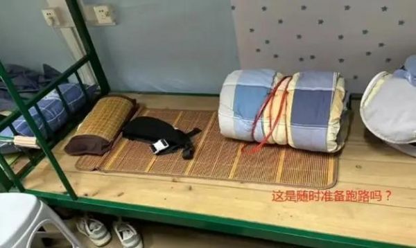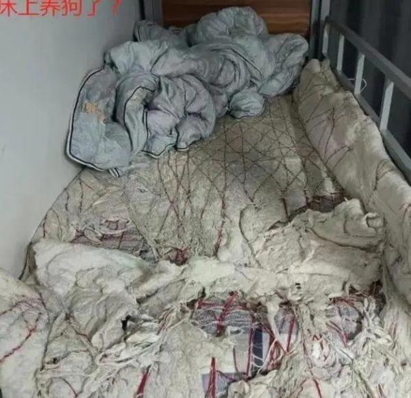 一名学生睡在一张临时床位上,犹如在荒漠中生存下来的人。这个同学的床铺很乱,一点也不整洁。有网友调侃道:"能不能在床上放一条狗?这种床铺,难免会让人产生一种很不整洁的错觉,你怎么不把自己的床铺也弄脏了?最根本的原因,就是要养成一个好的生活习惯,随时让自己的床保持干净。