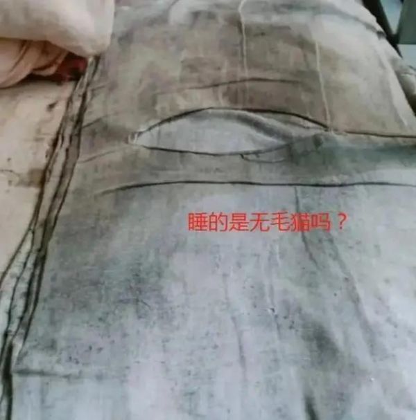 “和一只没毛猫睡在一起”。