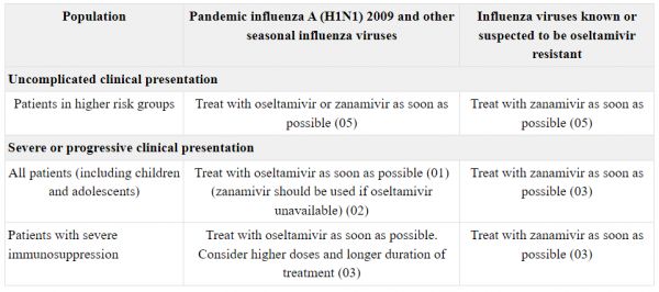 [7] WHO Guidelines for Pharmacological Management of Pandemic Influenza A(H1N1) 2009 and Other Influenza Viruses. Geneva: World Health Organization; 2010 Feb.[8] Yang SG, et al; National Influenza A Pandemic (H1N1) 2009 Clinical Investigation Group of China. Antiviral therapy and outcomes of patients with pneumonia caused by influenza A pandemic (H1N1) virus. PLoS One. 2012;7(1):e29652.