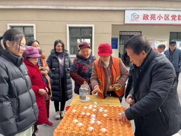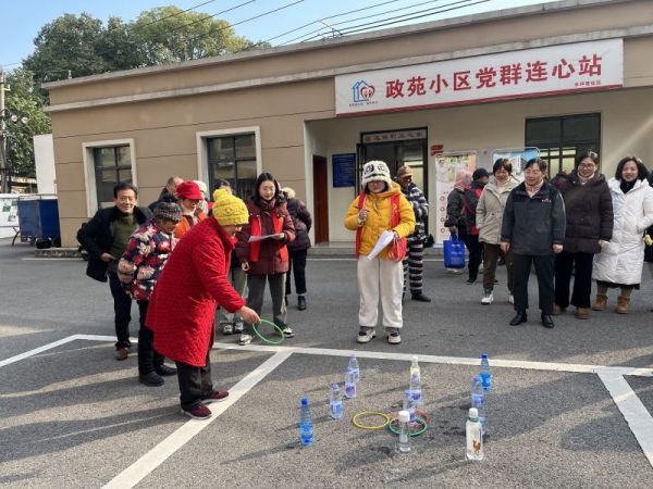 12月24日,政苑小区党群连心站门前洋溢着欢快的气氛,由丰坪巷社区联合润宁医养公司组织开展的老年趣味运动会吸引了小区及周边众多老年朋友勇跃参与。